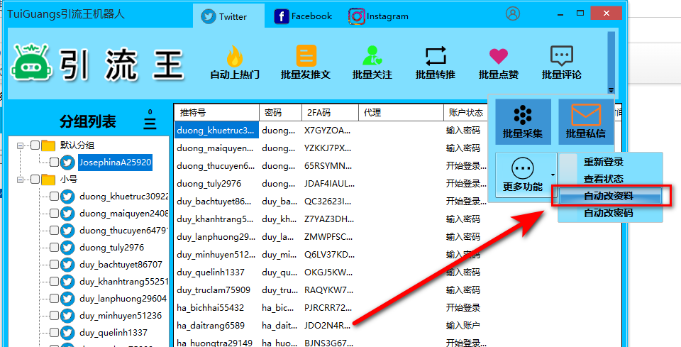 引流王软件 自动改资料 修改资料